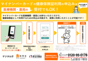 ② マイナ保険証の利用登録:マイナポータル、または病院窓口・薬局のカードリーダー等で利用登録(https://www.mhlw.go.jp/stf/newpage_40391.html)